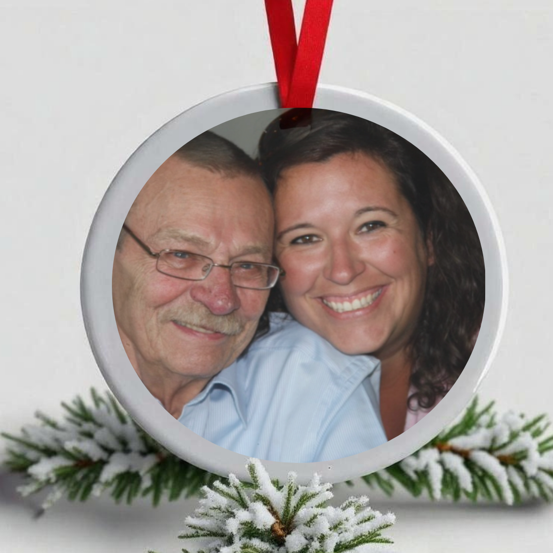 Verras jezelf of een dierbare met een rond kerstornament (7 cm) bedrukt met een eigen foto en/of korte tekst. Dit kerst-ornamentje is gemaakt van keramiek en kan aan beide kanten bedrukt worden. Aan de ene kant een foto, aan de andere zijde een tekst. Uiteraard indien dit gewenst is.